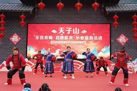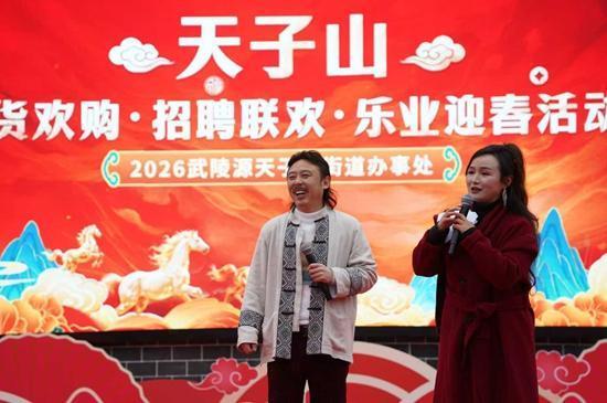 红网时刻新闻2月5日张家界讯(通讯员 屈泽清 周怀松)岁末迎新,年味渐浓。2月4日,张家界市武陵源区天子山街道举办“年货欢购·招聘联欢·乐业迎春”主题活动,联动各村同步推出“送温暖、送年货、送岗位、送欢乐”惠民举措,通过烟火市集、专场招聘、文艺展演三大核心板块,将新春福利与民生服务精准送到群众家门口,营造出热烈祥和、幸福安康的浓厚节日氛围。